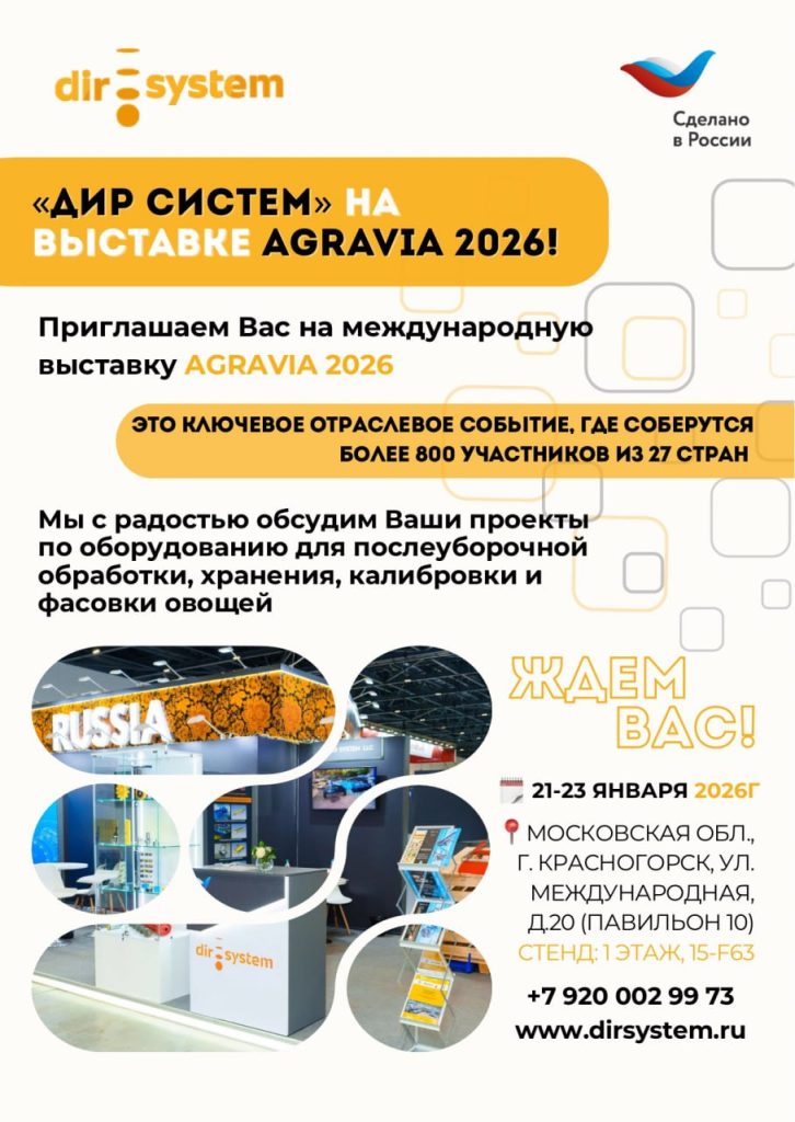 Компания «Дир Систем» приглашает вас посетить наш стенд на крупнейшей международной выставке AGRAVIA 2026.
